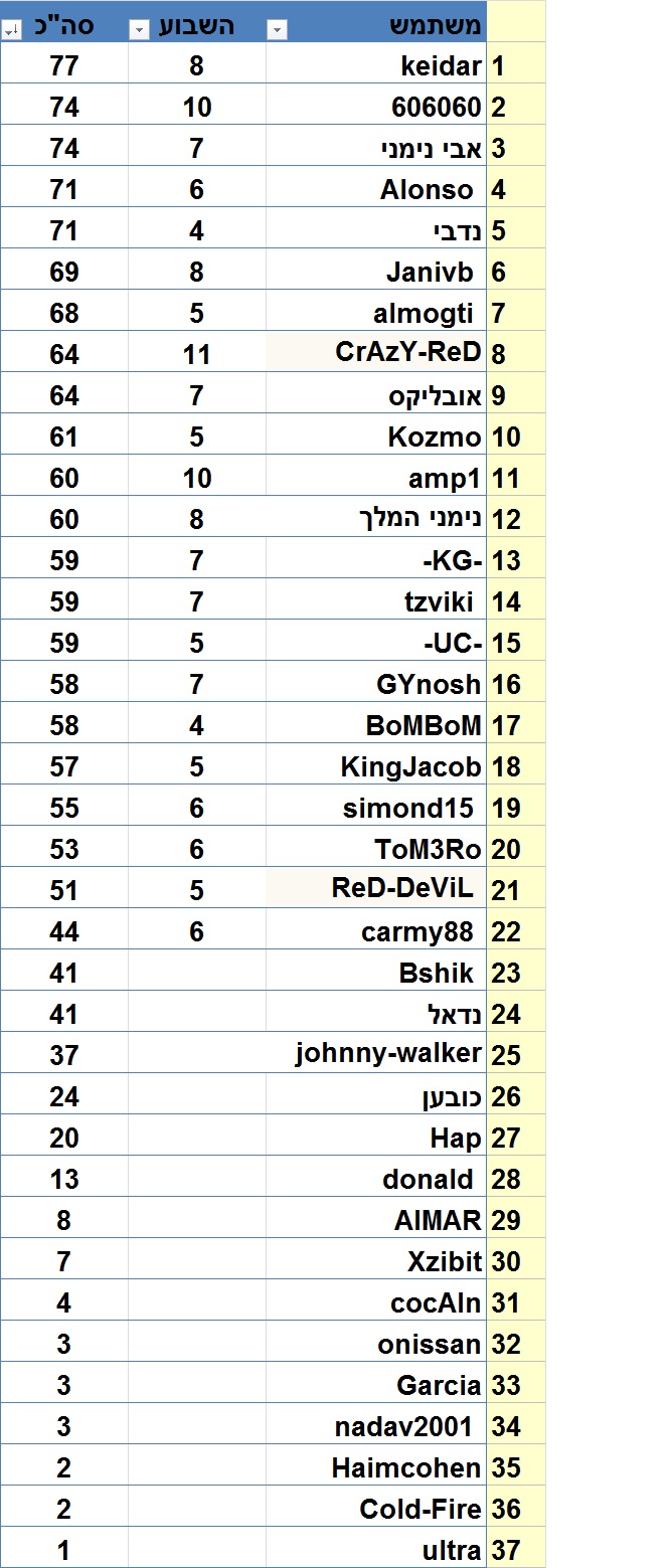 טבלה מעודכנת: