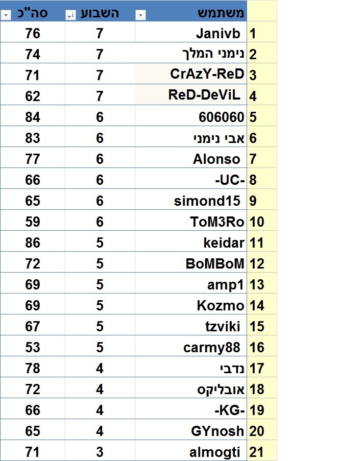 טבלה מעודכנת:http://rotter.name/User_files/nor/5671a3555fdcd7f4.jpg