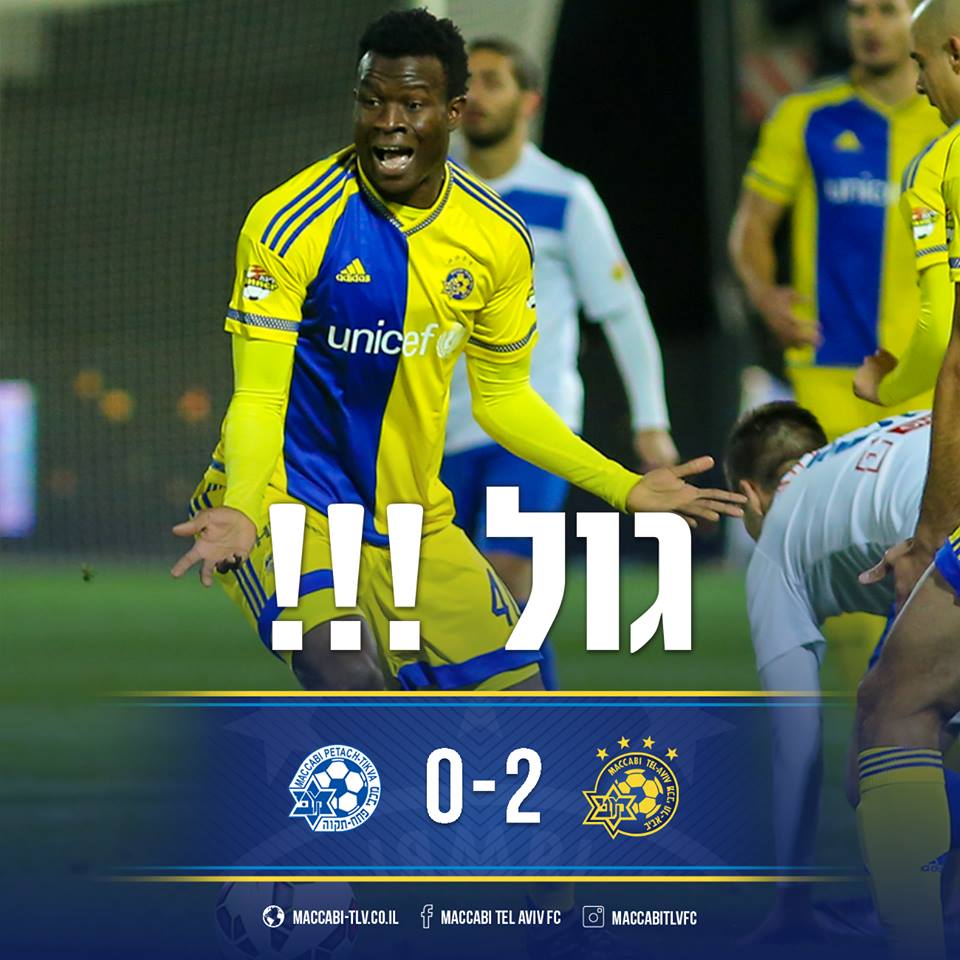 מכבי ת"א מובילה 2-0 על מכבי פ"ת משער ענק! של ערן זהבי, ושער נוסף של נוסא איגייבור.