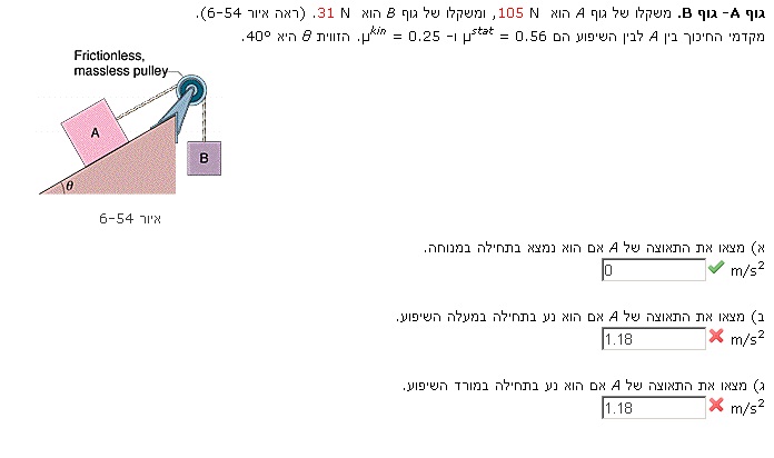 1.18 זאת התאוצה כאשר הגוף יורד בשיפוע