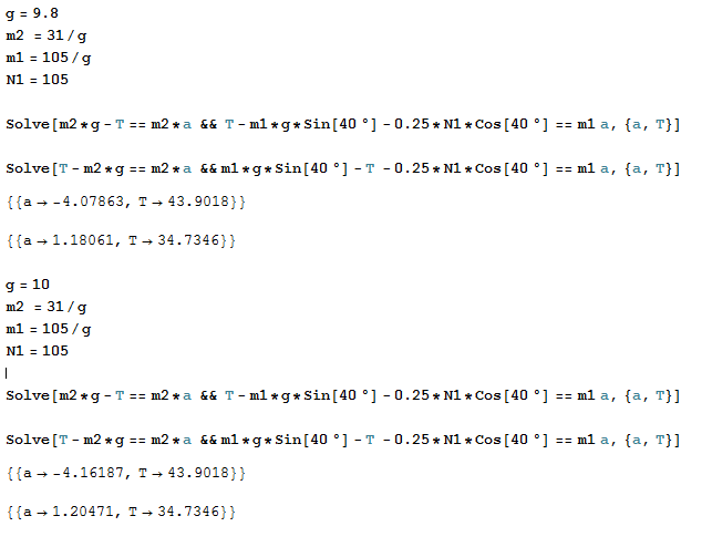mgsin40 - t - uk*mg*cos40 = 10.5a