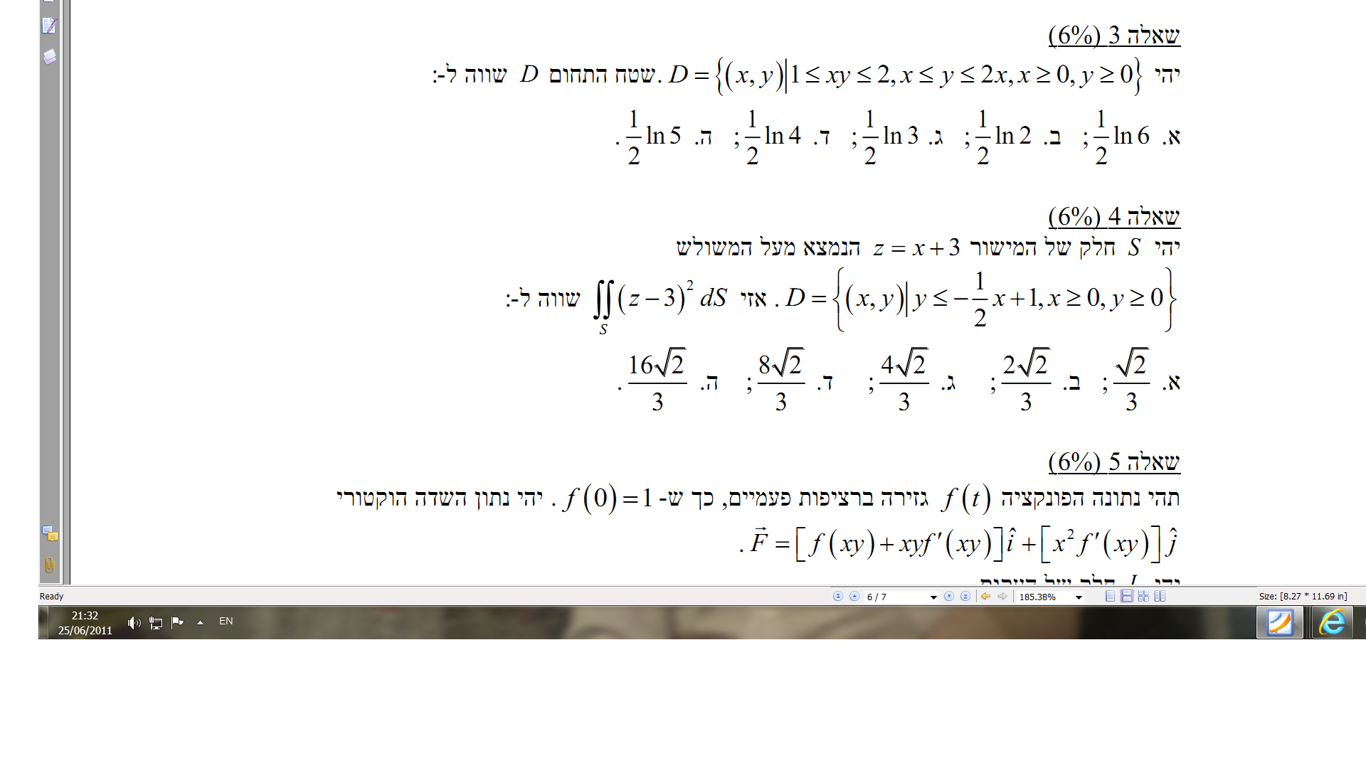 הגבולות הן X מ0 ל2 וY מ0 למה שנתון
