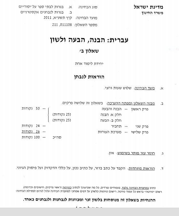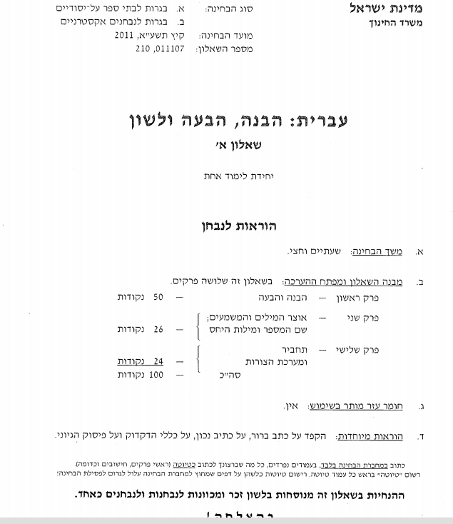 שאלה על תוכנית לימודים בגרות 'עברית הבנה הבעה ולשון'
