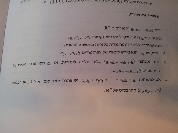 ג.אם K גדול מN אזי סדרת הוקטורים אינה בסיס