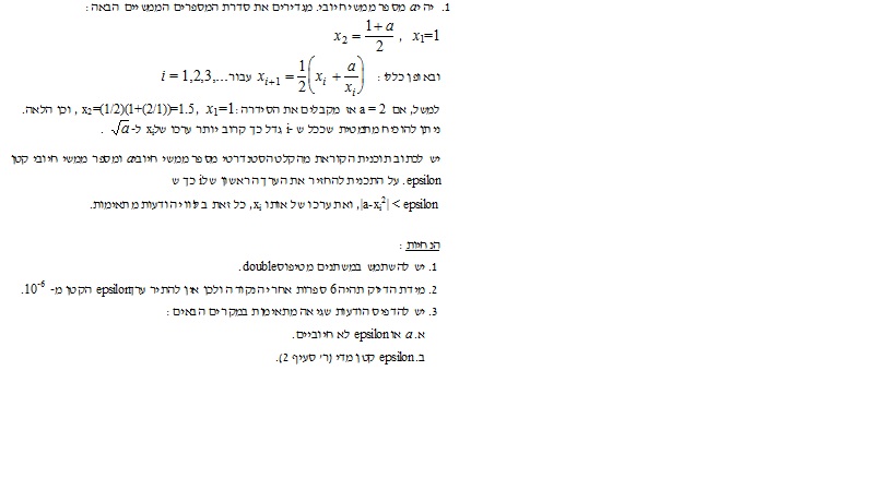 3. התוכנה שאתה אמור לבנות מקבל מספר a ופרמטר אפסילון שהוא בעצם המדד של כמה קרוב לשורש a האיבר ה-i יהיה...