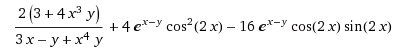 http://www.wolframalpha.com/input/?i=%284%28cos%282x%29%29%5E2*e%5E%28x-y%29%2B2ln%28x%5E4y%2B3x-y%29%2B4ey%29%27
