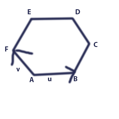 נתונים לך שני הווקטורים U ו V. אתה צריך לעשות חיבור מסוג של הראש של U לזנב של V וככה תגיע לווקטור חדש שכיוונו צפון מזרח. בשביל להבין יותר, אפשר לצייר את הווקטור V שוב, רק הפעם שהוא יוצא מנקודה B, ואת וקטור U שייצא מנקודה F. עכשיו נוצרה לך מקבילית. תחבר את האלכסון שפונה לצפון מזרח והנה לך וקטור שקול, שהוא בעצם U+V.