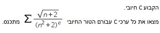 ברגע שאתה מגיע למסקנה הנ"ל, מספיק להוכיח עבור אילו ערכי C הטור עם האיבר: