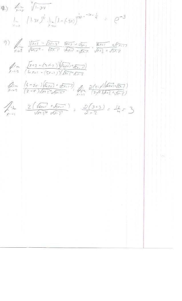 בתשובה הראשונה פשוט אתה מכפיל את החזקה ב3- / 3- ואז נשאר לך במונה 3- (כי הביטוי בסוגריים והמכנה הופכים להיות e.