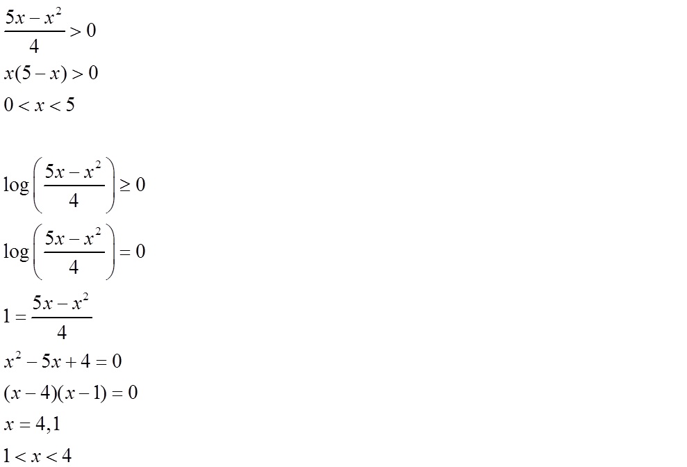 פתרון האי שיוויון - אני פתרתי ע"H מציאת השורשים (1 ו 4) ואז הצבת מספרים כדי לבדוק את התחומים
