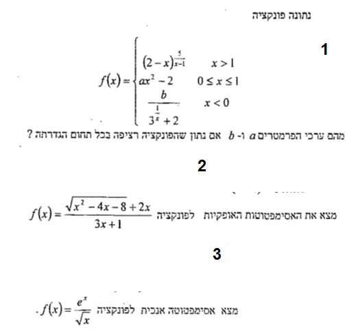 יש לך פתרונות לשאלה 1? כי יצא לי b=-4 ו a=-3. אם תרצה דרך אני אשמח להראות לך... IDAN_500  07.01.13 17:11 1