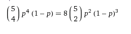 ההסתברות שלמשפחה יש מכונית היא P. בוחרים באקראי 5 משפחות. ידוע שההסתברות שבדיוק ל-4 מהן יש מכונית גדולה פי 8 מההסתברות שבדיוק ל-2 מהן יש מכונית.