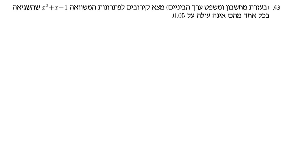 תראה למשל שאם מציבים 0.6 הערך חיובי ואם 0.65 הערך שלילי (או להיפך), ואז השורש בינהם עפ"י עה"ב.