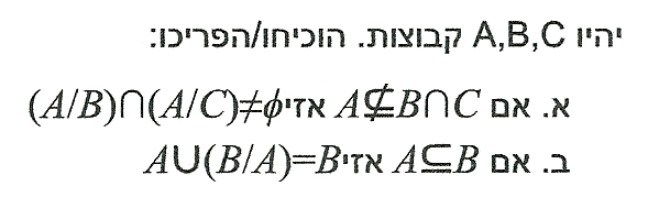 בשביל א. תצייר קבוצה A,B,C כך ש-A לא מוכלת בחיתוך של B ו-C