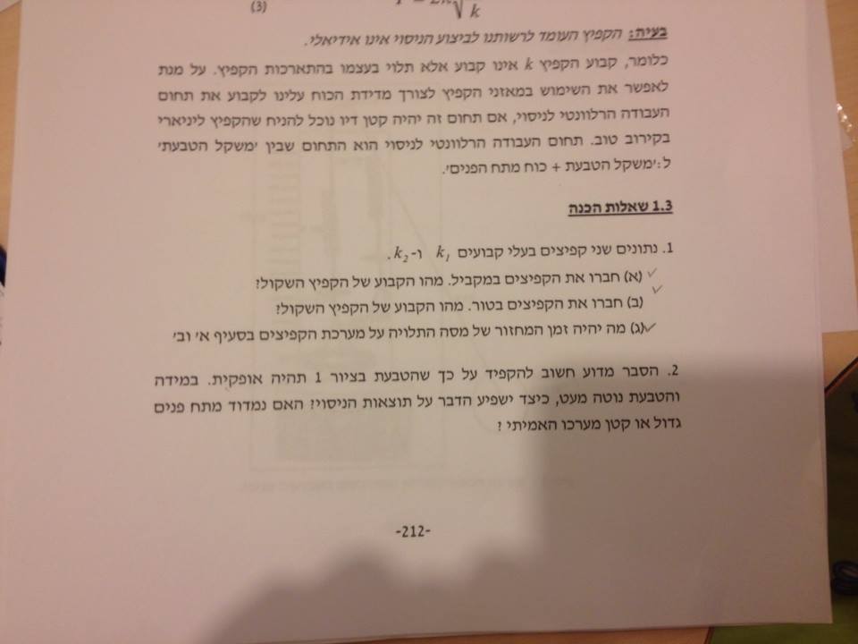 עזרה בשאלה 2:אני יתאר את הניסוי לוקחים טבעת עשויה מנחושת. מכניסים למים מזוקקים והמטרה להוציא אותה ודרך זה לחשב את מתח הפנים:
