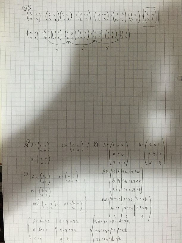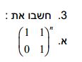 שאלה ראשונה ניסיתי לראות אם אני מוצא איזו שיטתיות אבל לא כל כך הצלחתי... שאלה שניה ניסיתי להציב נעלמים כמטריצה B ולמצוא לאיזה ערכים AB=BA אבל הגעתי ל2 משוואות עם 5 נעלמים ושם כבר לא ידעתי מה לעשות חח