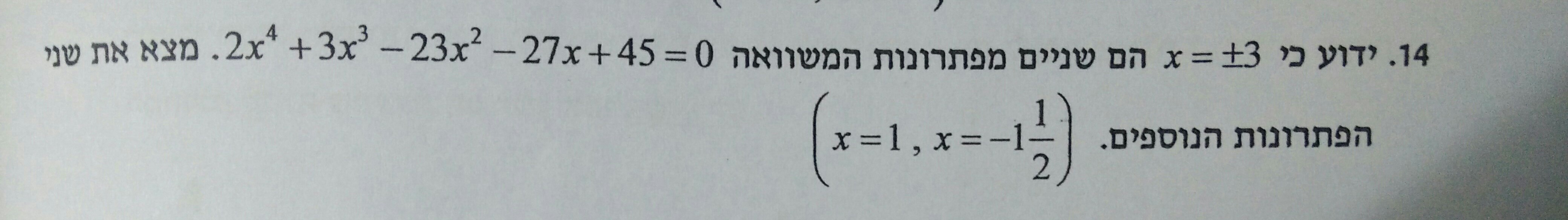 כל מה שצריך להבין מהשאלה שאם נתון לך פתרון c של המשוואה, אתה מחלק את המשוואה ב x-c