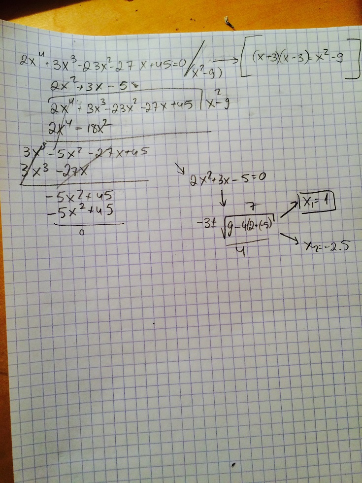 2X^4+3X^3-23X^2-27X+45 = (X+3)(2X^3-3X^2-14X+15)=0