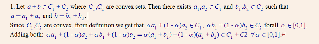 יותר לחיבור קורדינטות זאתמרת נקח נקודה a שנמצאת ב A ונקודה b שנמצאת ב B ונחבר את המרחקים שלהם מ0 נניח לפשטות במישור שלx,y אז הקורדינטה a+b נמצאת בקבוצה "A+B" וצריך להראות שהקבוצה הזאת A+B שמכילה את כל הצירופים האפשריים האלה היא קבוצה קמורה.