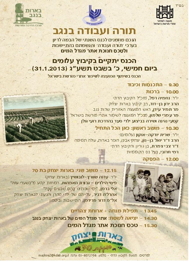 "בארות יצחק בנגב - יום עיון וחנוכת האתר המשופץ, 31/1/2013"